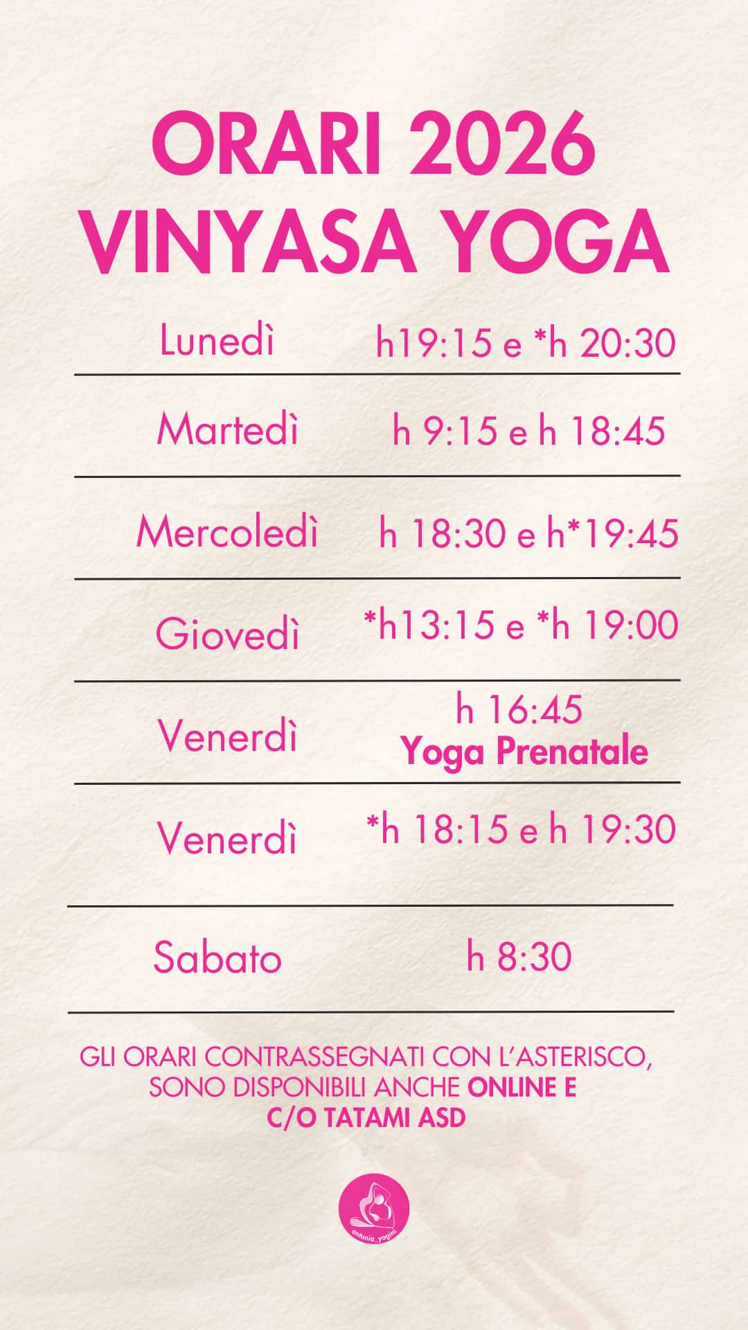Le lezioni Yoga Flow, hanno la durata di 1h e si svolgono sullo sfondo di musica contemporanea, classica o Indiana.